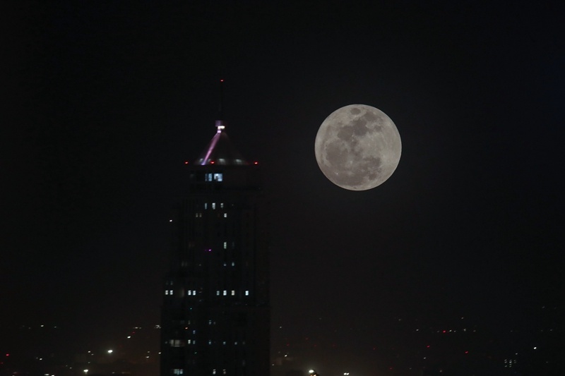 ↑“超級月亮”現(xiàn)身土耳其首都安卡拉夜空。新華社記者 沙達提 攝