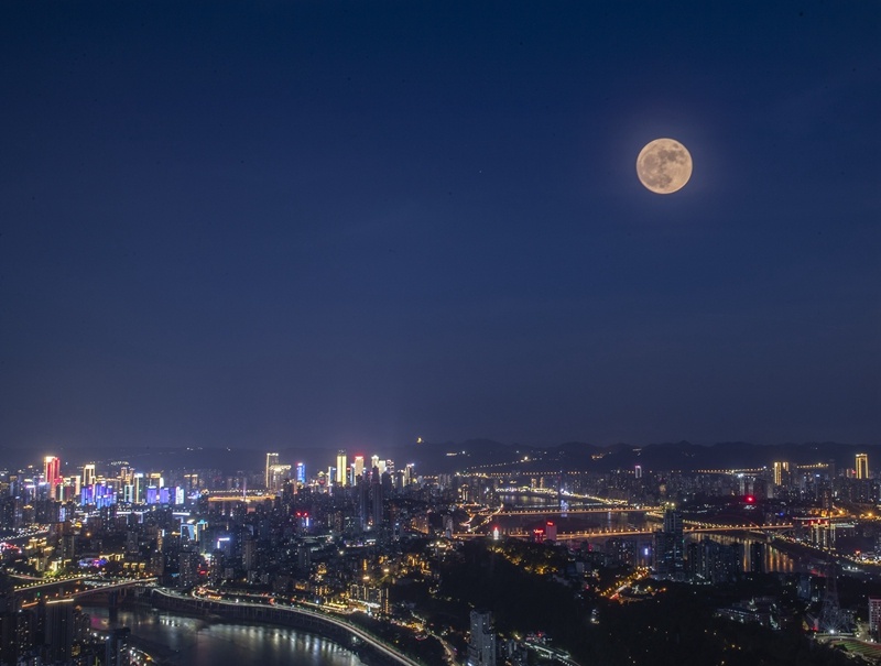↑“超級月亮”現(xiàn)身重慶夜空。新華社記者 黃偉 攝