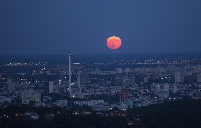 ↑“超級月亮”現(xiàn)身克羅地亞首都薩格勒布夜空。新華社發(fā)(Pixsell圖片社/巴比奇攝)