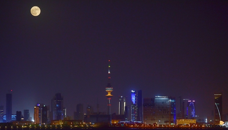 ↑“超級月亮”現(xiàn)身科威特首都科威特城夜空。新華社記者 尹炣 攝