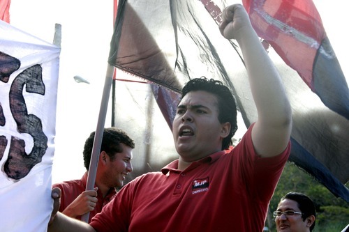 2008年12月20日,巴拿馬民眾在首都巴拿馬城游行示威,抗議1989年美軍入侵巴拿馬。新華社記者王沛攝