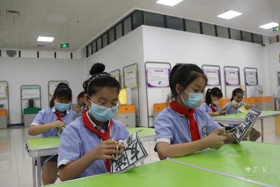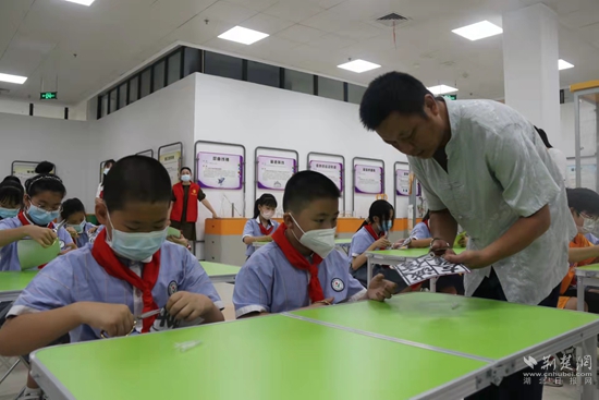 老師指導(dǎo)學(xué)生剪紙。通訊員 供圖