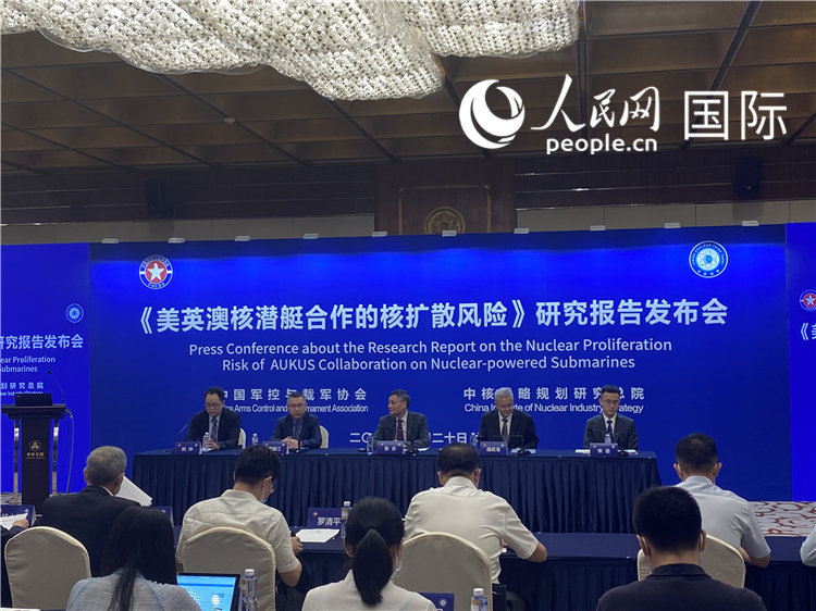 人民網(wǎng)北京7月21日電 (記者張夢旭、于洋)中國軍控與裁軍協(xié)會與中核戰(zhàn)略規(guī)劃研究總院20日在北京聯(lián)合舉辦《危險的合謀:美英澳核潛艇合作的核擴散風險》研究報告發(fā)布會。這是中國學術(shù)機構(gòu)首次公開發(fā)布關(guān)于美英澳核潛艇合作的專題研究報告。報告通過詳實的數(shù)據(jù)與事例,客觀分析了美英澳核潛艇合作造成的嚴重核擴散風險和多重危害,并提出相關(guān)建議。