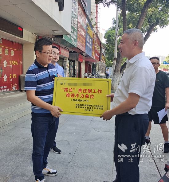 荊楚網(wǎng)(湖北日?qǐng)?bào)網(wǎng))訊(通訊員 許俊孝)陽新縣城管局7月22日表示,為著力構(gòu)建城市共建共管、全民共創(chuàng)共享工作新格局,助力新型城鎮(zhèn)化示范縣建設(shè)和國(guó)家文明城市創(chuàng)建,陽新縣對(duì)“路長(zhǎng)”和“門前三包”兩項(xiàng)城市眾管工作機(jī)制責(zé)任單位實(shí)施“黃牌”警示制度。目前,已有4家單位因連續(xù)兩個(gè)月考核不達(dá)標(biāo)“榮獲”此牌,并掛牌督辦,另有六家單位獲得“示范單位”金牌榮譽(yù)。