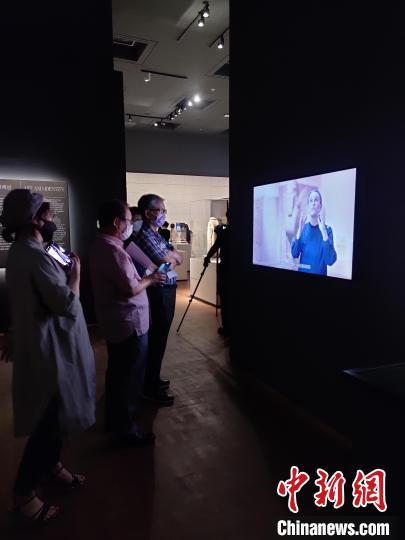 圖為當?shù)貢r間7月21日,參觀者在韓國國立中央博物館美索不達米亞陳列館的預展上觀看講解視頻?!⑿?攝