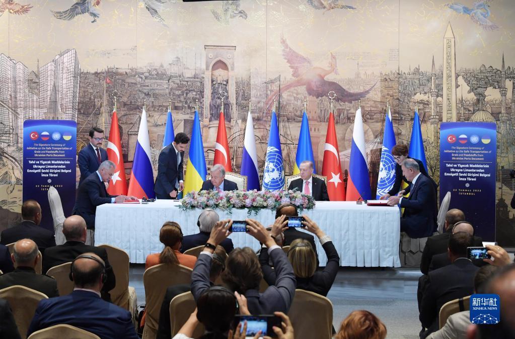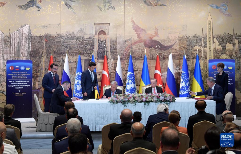 簽署協(xié)議前,古特雷斯和土耳其總統(tǒng)埃爾多安分別發(fā)表講話。古特雷斯說,將農(nóng)產(chǎn)品運往世界各地的市場將有助于消除全球糧食供應短缺,緩解價格高企的壓力。即將簽署的協(xié)議必須得到全面實施,因為世界迫切需要該協(xié)議以應對全球糧食危機。