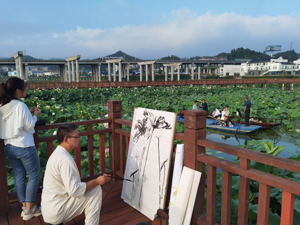 泛舟太極湖,品讀上善若水的武當;做一次莊子,乘物游心,逍遙太極。伴隨著悠揚的古琴聲,兩名武當文化愛好者泛舟而下,觀武當太和樓、看白鷺齊飛,品讀武當問道、太和尋仙、逍遙山水間的人文經(jīng)典,感受人與自然的和諧共生。