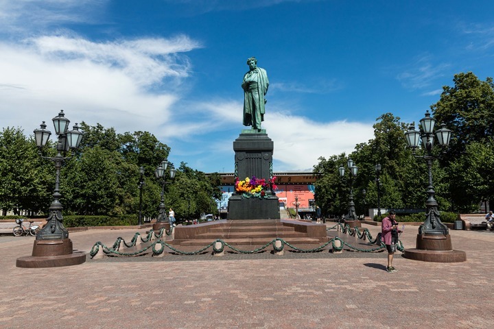 這是7月20日在俄羅斯首都莫斯科拍攝的普希金廣場(chǎng)。新華社記者白雪騏攝