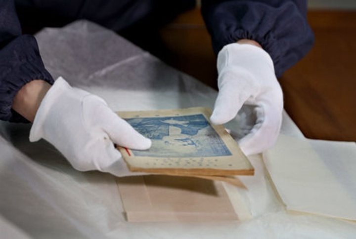 2020年6月23日,中共一大會(huì)址紀(jì)念館藏品保管部的工作人員展示張人亞和他的親屬保護(hù)的《共產(chǎn)黨宣言》中文全譯本。新華社記者劉穎攝