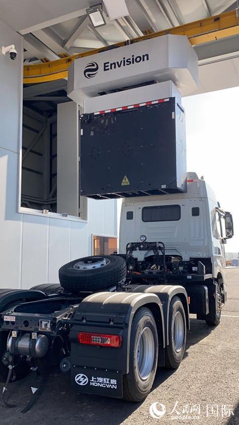 遠景零碳產業(yè)園內的換電重卡項目。人民網記者 吳思萱攝