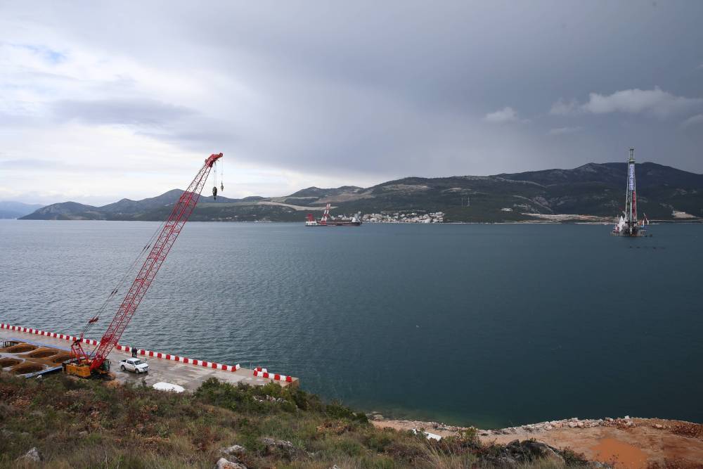 ↑這是2019年4月11日在克羅地亞南部的佩列沙茨半島拍攝的中國企業(yè)中標承建的佩列沙茨大橋項目現(xiàn)場。新華社記者鄭煥松攝