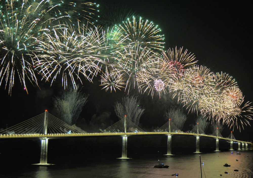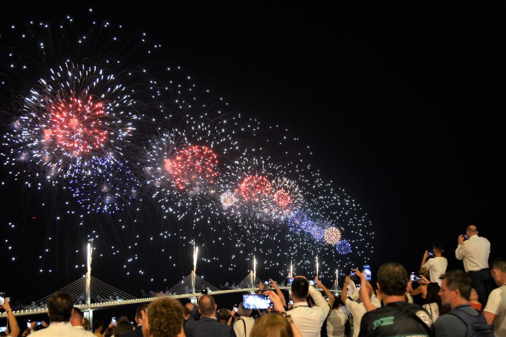 ↑這是7月26日在克羅地亞科馬爾納拍攝的由中企承建的佩列沙茨大橋通車儀式上的焰火表演。新華社記者 李學軍 攝