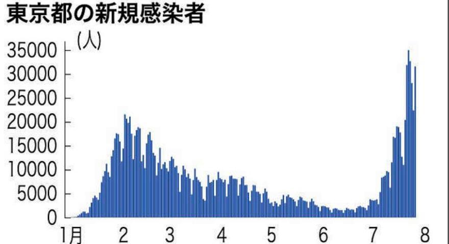 7月26日,東京都新增確診病例3萬1593例,單日新增時隔2天再次超過3萬例。截至7月26日,東京都最近一周的日均新增確診病例數(shù)為2萬8866.3例,是前一周的178.8%。目前,東京都的新冠病床使用率已達(dá)到49.6%,重癥病床使用率為22.9%。