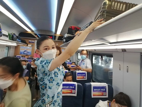 新華網(wǎng)昆明7月28日電(記者 侯強(qiáng))在中老鐵路旅客列車上,活躍著這樣一群年輕人,他們?cè)诹熊嚢嘟M的各個(gè)崗位上將自己的青青活力投入到服務(wù)乘客之中,為中老鐵路列車增添了青春的色彩。