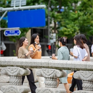 7月12日,人們?cè)陧n國首爾街頭行走。新華社記者王益亮攝