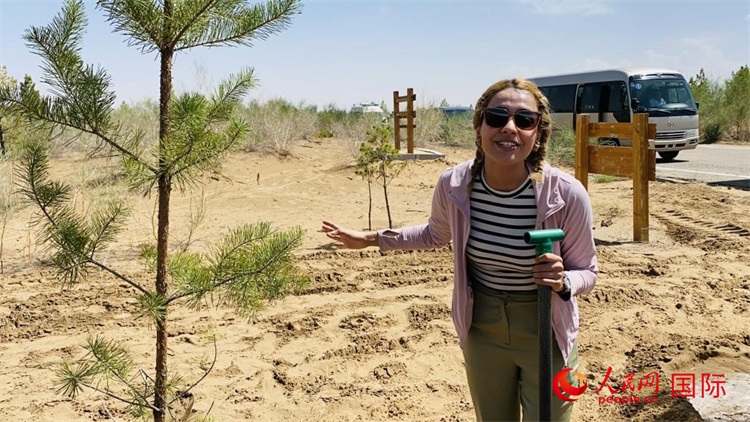 “我在這也栽種了一棵小樹,給它取名叫‘小鄭’,就像我的孩子一樣。我還要和我的粉絲們分享這里的故事,讓他們看到中國治沙的壯舉?!表n國網(wǎng)紅博主鄭智恩興奮地說。
