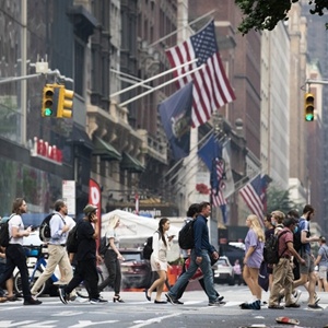 圖為2021年7月20日,人們走在美國紐約街頭。新華社記者王迎攝