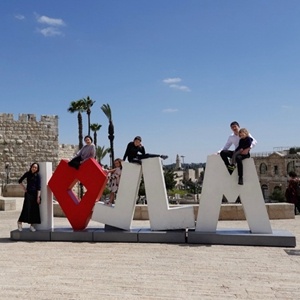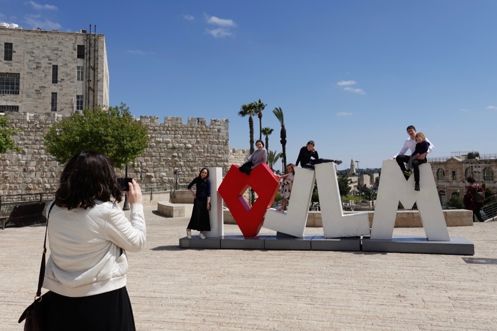 4月12日,游客在耶路撒冷老城附近留影。新華社記者王卓倫攝