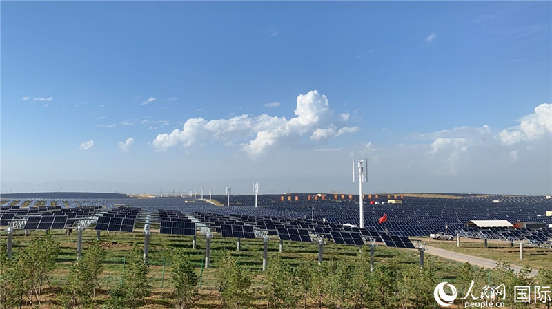 蒙西基地庫布其200萬千瓦光伏治沙項(xiàng)目基地。人民網(wǎng)記者 吳思萱攝