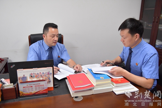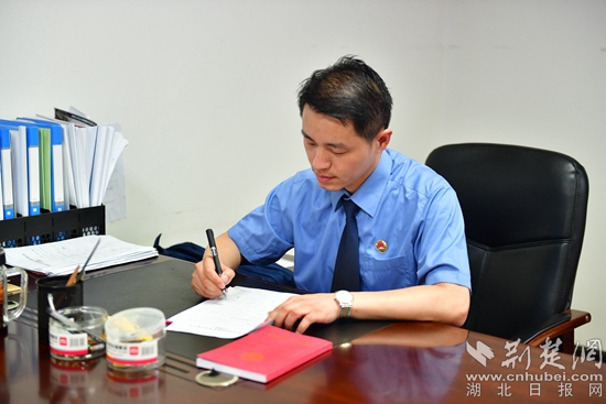 “他對(duì)待工作認(rèn)真細(xì)致?!薄八恢痹谵k案一線。”“他是我院一面屹立不倒的紅旗。”同事口中好評(píng)不斷的他,是蘄春縣檢察院第三檢察部主任袁國斌,一名退伍老兵。