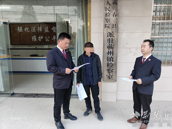 張國銀(左)向犯罪嫌疑人張某公開宣告送達(dá)《不起訴決定書》。通訊員 供圖
