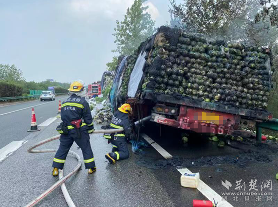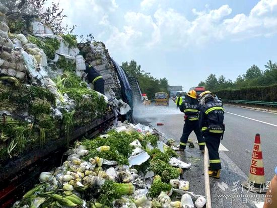 荊楚網(wǎng)(湖北日報網(wǎng))訊(通訊員 胡旭鵬)8月1日,G50滬渝高速往黃石大橋方向一貨車輪胎起火引發(fā)火災,所幸事故未造成人員傷亡,但是滿車的新鮮蔬菜變成了“熟菜”。