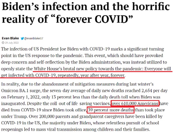 文章認(rèn)為,從拜登本人和白宮表態(tài)可以看出,他們已借“總統(tǒng)中招”這件事公開表明了美國(guó)政府在抗疫問題上的殘酷政策:每個(gè)人都將感染新冠病毒,“反反復(fù)復(fù),直到永遠(yuǎn)”。