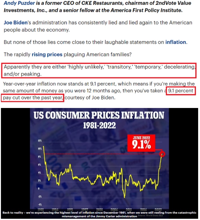 用美國(guó)第一政策研究所高級(jí)研究員安迪·普茲德的話說(shuō),“說(shuō)了那么多關(guān)于通脹的公開謊言,難怪拜登的支持率被沖進(jìn)了馬桶里”。