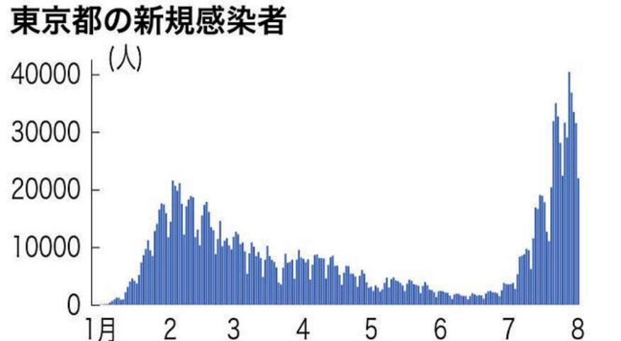 8月1日,東京都新增確診病例2萬(wàn)1958例,雖然單日新增與上周一相比減少429例,但已連續(xù)13天超過(guò)2萬(wàn)例。截至8月1日,東京都最近一周的日均新增確診病例數(shù)為3萬(wàn)2116.3例,是前一周的123.9%。