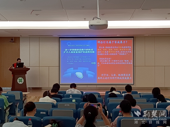 當(dāng)天,黃石港區(qū)司法局特邀湖北風(fēng)勁律師事務(wù)所宋丞律師,重點圍繞民法典的婚姻家庭編進行了宣講。