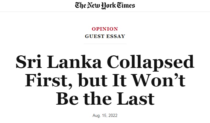 中國日報(bào)網(wǎng)8月22日電 當(dāng)?shù)貢r(shí)間8月15日,美國《紐約時(shí)報(bào)》網(wǎng)站刊登了斯里蘭卡作家因德拉吉特·薩馬拉什(Indrajit Samarajiva)題為《斯里蘭卡第一個(gè)崩潰,但絕不會(huì)是最后一個(gè)》(Sri Lanka Collapsed First, but It Won’t Be the Last)的文章,其中稱,在斯里蘭卡宣布國家破產(chǎn)后,西方媒體便將責(zé)任甩給中國,聲稱中國讓斯里蘭卡陷入債務(wù)陷阱,但最終的責(zé)任其實(shí)是“西方主導(dǎo)的新自由主義體系”。