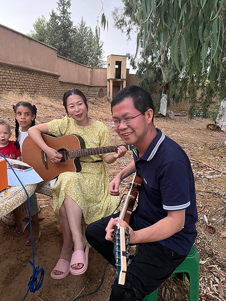 為豐富當(dāng)?shù)孛癖姷臉I(yè)余文化生活,中國(guó)醫(yī)療隊(duì)隊(duì)員每逢周末晚上還會(huì)在“友誼小園”投影播放電影、動(dòng)畫(huà)片以及中阿兩國(guó)的風(fēng)光片等。每逢此刻,醫(yī)療隊(duì)員們與當(dāng)?shù)鼐用駠谑琅?,一邊欣賞電影,一邊暢談著兩國(guó)間不同的文化、習(xí)俗,場(chǎng)面和諧溫馨。醫(yī)療隊(duì)隊(duì)員胡剛感慨得對(duì)記者說(shuō):“坐在石桌旁,茶香混合著咖啡的香氣,孩子們的笑聲合著悠揚(yáng)的音樂(lè),在夜風(fēng)中飛向遠(yuǎn)方,友誼的種子就在此時(shí)悄悄種下。”