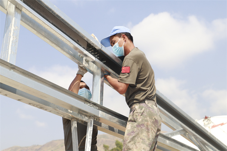 面對(duì)工期緊張、工程量大、工藝復(fù)雜等現(xiàn)實(shí)困難,官兵們集智攻關(guān)克難題、加班加點(diǎn)趕進(jìn)度、用修雙抓保性能,探索形成了多能編組、就便取材、快速筑基等多種施工組織和作業(yè)方法,大大提高了作業(yè)效率。施工期間,官兵們展現(xiàn)出專(zhuān)業(yè)的能力素質(zhì)、堅(jiān)強(qiáng)的意志品質(zhì)、優(yōu)良的作風(fēng)形象,得到了聯(lián)剛穩(wěn)定團(tuán)工作人員和維和友軍的高度贊揚(yáng)。