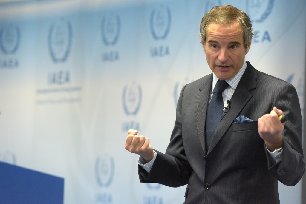 4月28日,國際原子能機構(gòu)總干事格羅西在奧地利維也納舉行的新聞發(fā)布會上講話。新華社記者郭晨攝