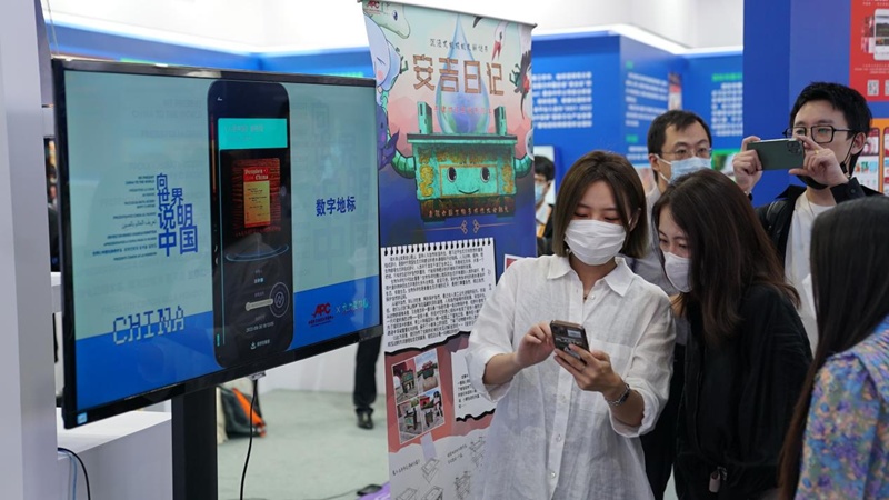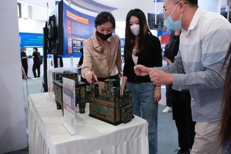新華網北京9月2日電(薛臣)2022年中國國際服務貿易交易會8月31日在北京開幕。在服貿會首鋼園區(qū),中國外文局展示的文創(chuàng)項目,旨在通過“數(shù)字+”的方式,將文化元素嵌入創(chuàng)意設計環(huán)節(jié),面向海內外用戶推出數(shù)字文化精品。