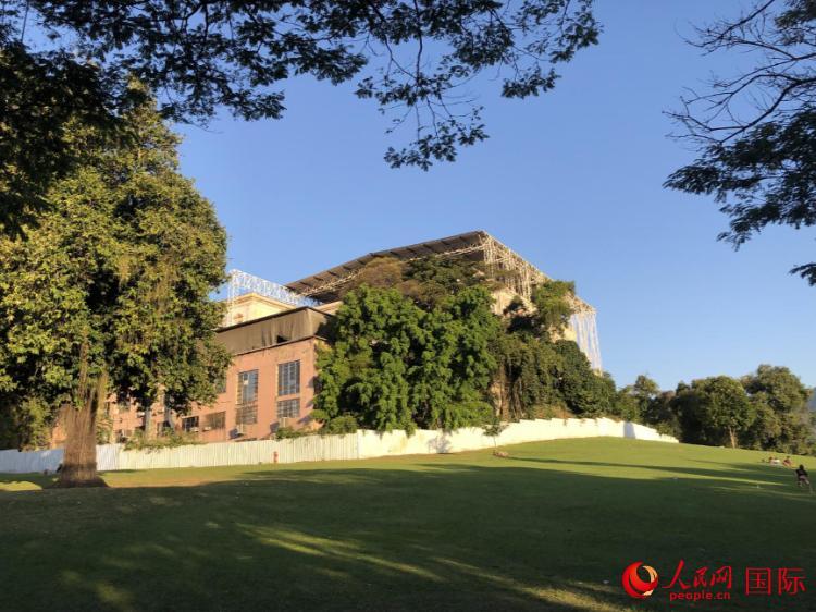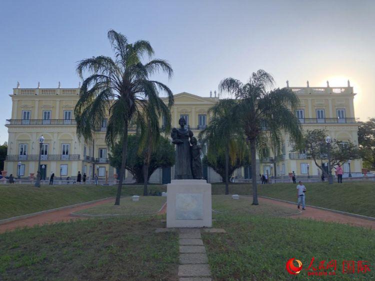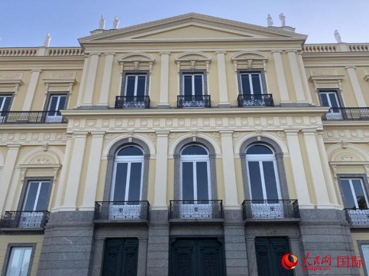 | 在慘遭大火焚毀4年后,巴西國家博物館主建筑圣克里斯托旺宮的外立面和前花園9月2日修復(fù)完工。人民網(wǎng)記者 陳一鳴攝 |