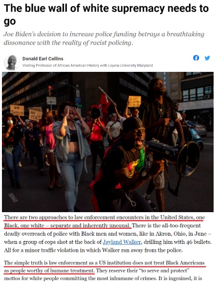 卡塔爾半島電視臺日前的報道說,美國執(zhí)法人員對白人和非洲裔執(zhí)行的是兩種不同的行事方式,警察似乎不認為非洲裔需要被人道地對待。