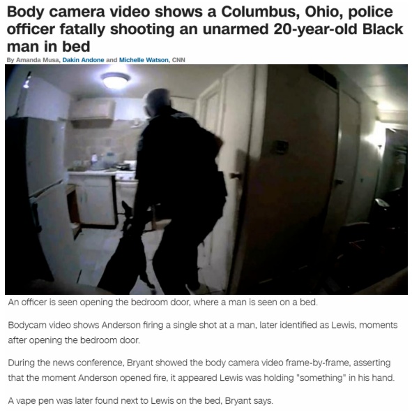 俄亥俄州首府哥倫布市警方近日公布的一條執(zhí)法記錄儀視頻,詳細記錄了警察在入室執(zhí)法過程中射殺了一名從睡夢中驚醒的非洲裔男子。