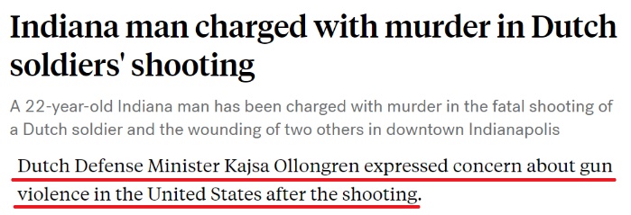 荷蘭國防大臣奧隆格倫就此表示,美國的槍支暴力令人擔(dān)憂。