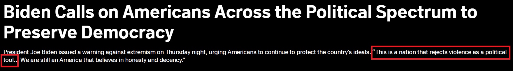 當?shù)貢r間9月1日,美國總統(tǒng)拜登在費城發(fā)表演講時,列舉國會大廈騷亂事件等案例,試圖說明極端主義為美國帶來的危害,他呼吁美國人拒絕將暴力作為政治工具。