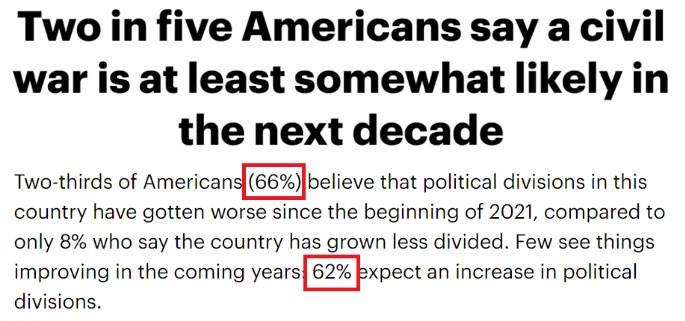 然而,許多美國人認為,美國的政治分化和暴力將加劇。