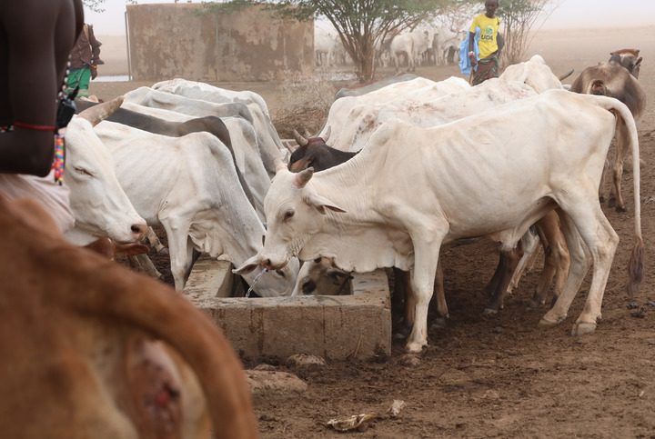 該郡萊薩米斯地區(qū)的一處大型飲水點(diǎn),是地區(qū)內(nèi)約1000名牧民和數(shù)萬(wàn)頭牲畜賴以生存的水源。大批牛群和羊群從各方趕赴這里,牧民們不斷使用長(zhǎng)棍驅(qū)趕牲畜以維持秩序。