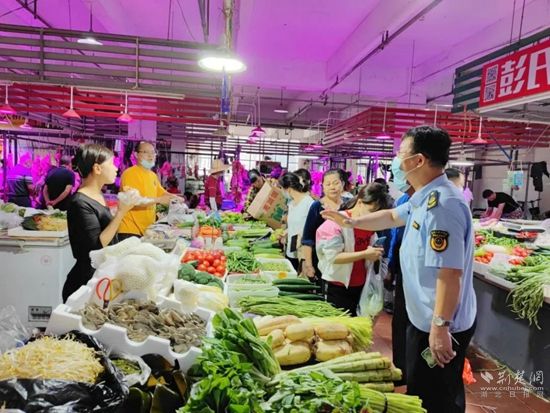 在各農(nóng)貿(mào)市場,執(zhí)法人員對蔬菜、肉類、糧油價格進(jìn)行檢查。通訊員 供圖