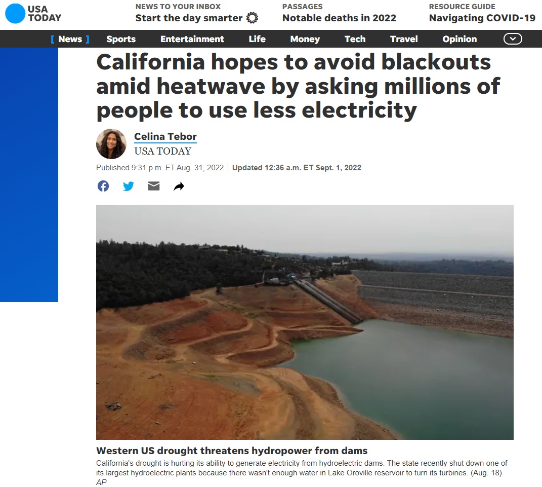 中國日?qǐng)?bào)網(wǎng)9月5日電 據(jù)今日美國新聞網(wǎng)和美國有線電視新聞網(wǎng)綜合報(bào)道,近日,高溫?zé)崂饲忠u加州,官員們一再要求居民別開空調(diào)以避免采取輪流停電措施;密西西比州首府連續(xù)五天無法正常供水,居民們生活幾乎停擺。在自然災(zāi)害對(duì)人類生活引發(fā)重大影響之下,人們呼吁政府有所作為。
