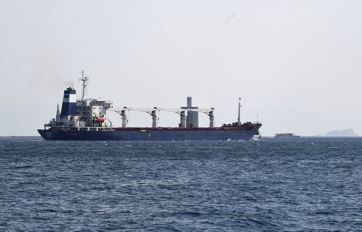8月3日,從烏克蘭敖德薩港出發(fā)的首艘運糧船“拉佐尼”號經(jīng)過位于土耳其伊斯坦布爾的博斯普魯斯海峽。新華社記者沙達提攝