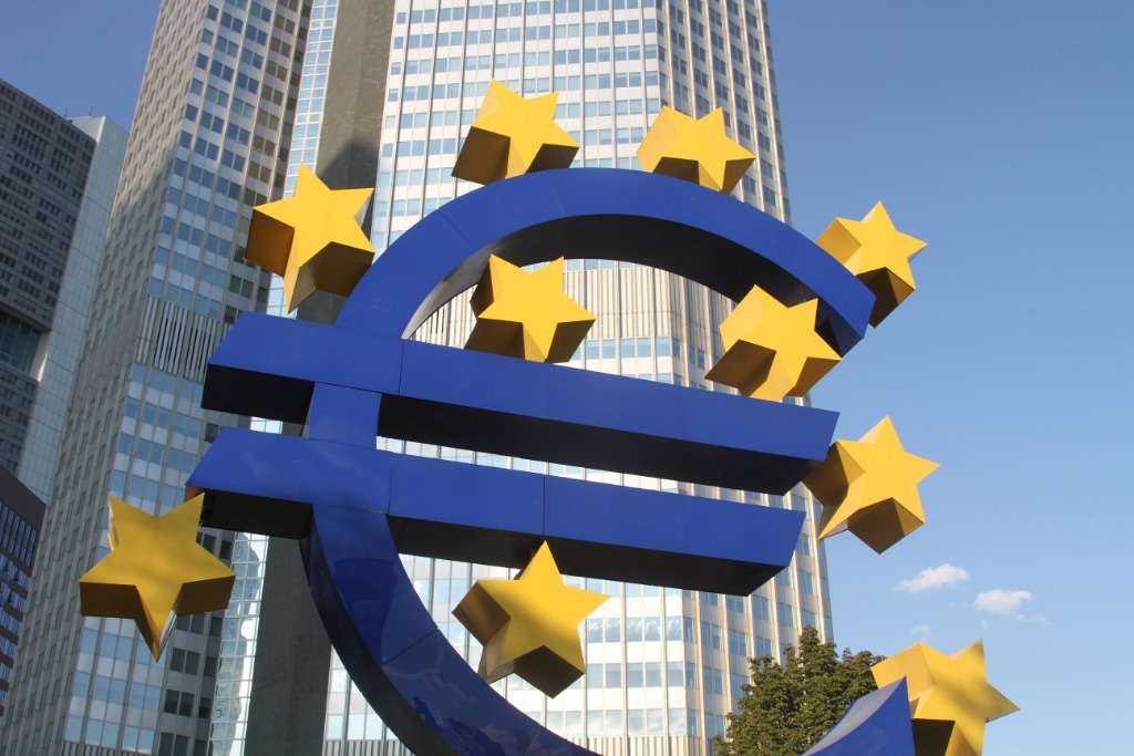 這是8月22日在德國(guó)法蘭克福拍攝的歐元雕塑。新華社記者單瑋怡攝