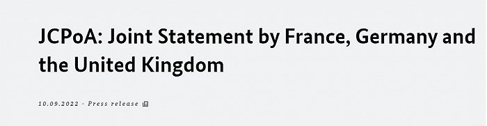 當(dāng)?shù)貢r(shí)間9月10日,德國、法國和英國發(fā)表了一項(xiàng)聯(lián)合聲明,回應(yīng)了伊朗方面提出的最新要求。聲明中稱,他們對(duì)伊朗是否致力于達(dá)成新的核協(xié)議存在“嚴(yán)重懷疑”。