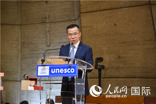 | 中國駐法國大使盧沙野在論壇致辭。人民網(wǎng)記者 劉玲玲攝 |
