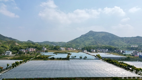 荊楚網(wǎng)(湖北日報網(wǎng))訊(通訊員劉健 范騁)刷黑的公路伴著雞籠山腳下一脈小溪穿村過寨,左邊是連綿的大棚果蔬,右側是飄香的稻田。