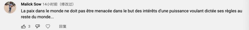 法語網(wǎng)友Malick Sow:“不能為了一個(gè)想要將其規(guī)則強(qiáng)加給世界其他地區(qū)的大國的利益而威脅到整個(gè)世界的和平。”“這起核轉(zhuǎn)讓事件就是一個(gè)完美的例子,美國隨時(shí)準(zhǔn)備一切行動(dòng),甚至能為了經(jīng)濟(jì)利益打擊自己的盟友?!?/p>